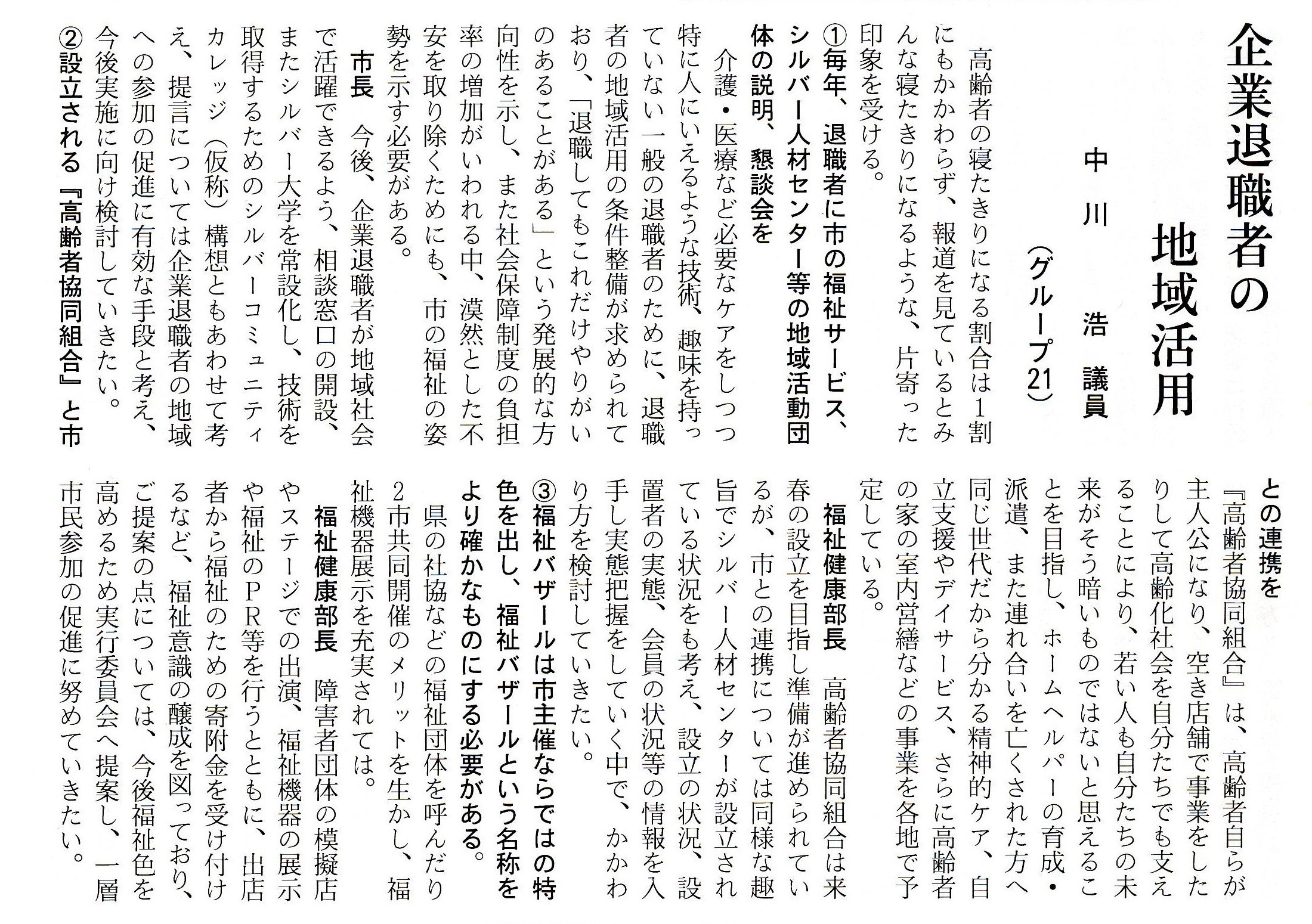 企業退職者の地域活用