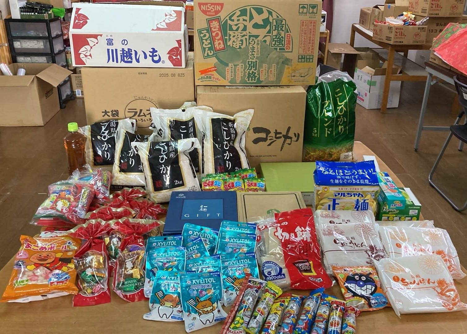 📷支援物資が大量なら段ボール片付けも大量。『雑然とした所』にしない・大事な作業の1つです。