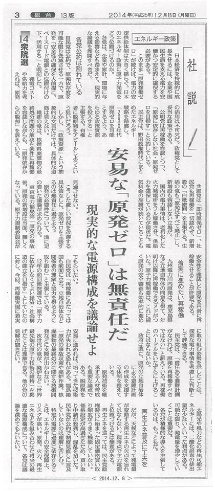 「原発にずっと無関心だった。でも福島の事故で変わった。やめたほうがいい、危険物は。科学によって造られた物が、無謬(むびゅう。誤りのないこと)であるはずが無い」。