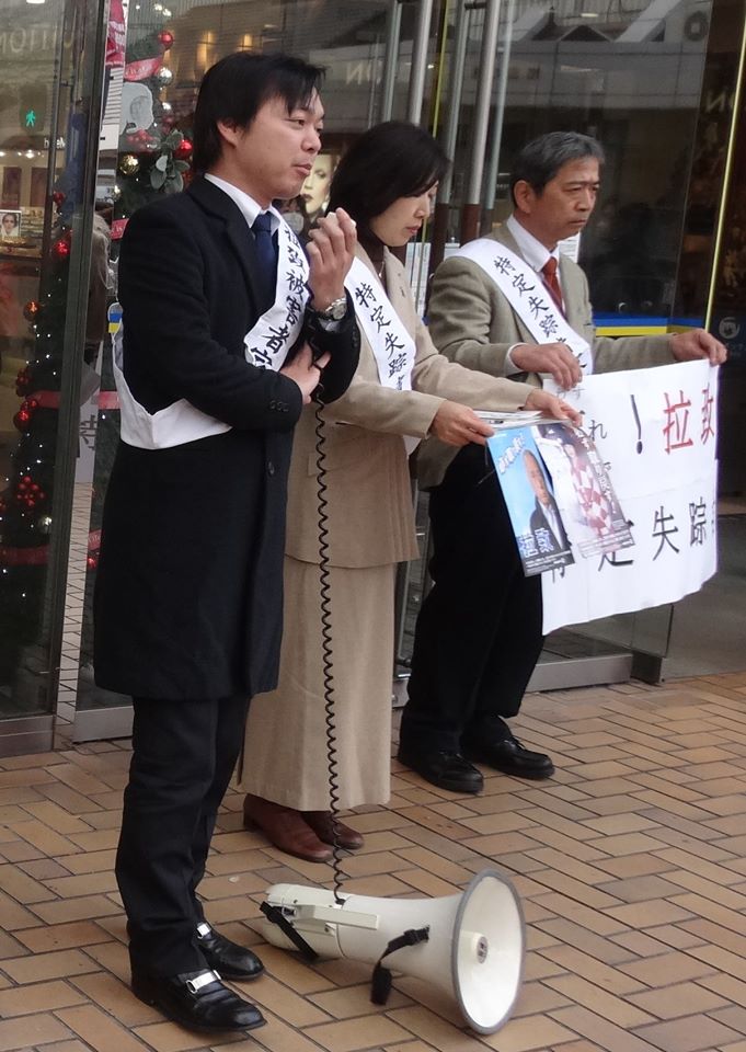 青柳候補の出陣式で演説。