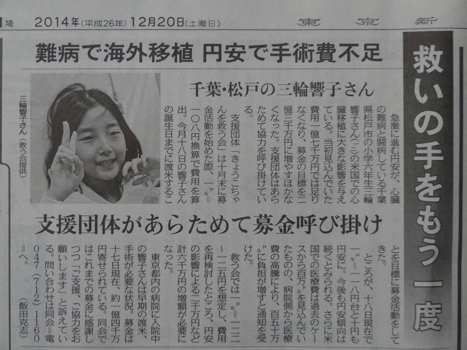 きょうこちゃんを救う会 2014年9月に「拡張型心筋症」と診断された三輪響子ちゃんを救う会