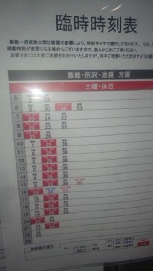 「あさって(日曜)秩父・大滝地区に雪が積もる予報」と県道路課から17時に聞き、秩父の議員などに連絡。天気予報にご注意を。