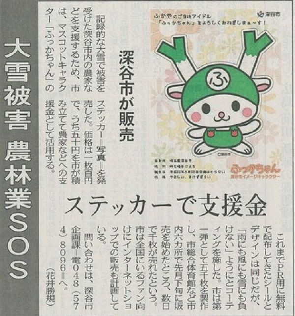 県庁として、ふっかちゃんだけ市町村に呼びかける事はしないので、『コバトン復興応援シール』を至急作成したり(例えば、既存のシールに説明紙を貼るだけ。お金はほとんどかからない)、コバトンが募金活動をするなどして、