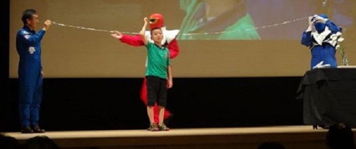 災害ボランティアセンターに戻って、狭山の子供達が折った鶴(時間がなくて、千羽は折れませんでしたが)を飾って頂いた。