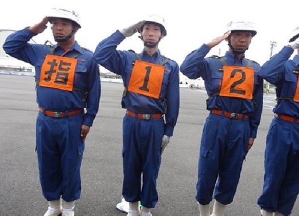 愛媛県緊急救助隊の皆さん。避難指示が出て、現地本部に集まり、これから一旦下山するところ。