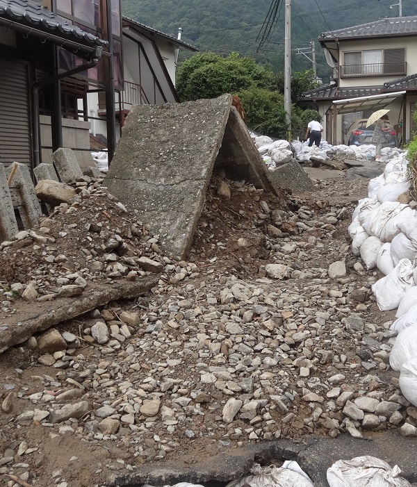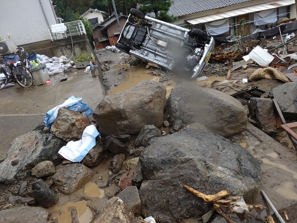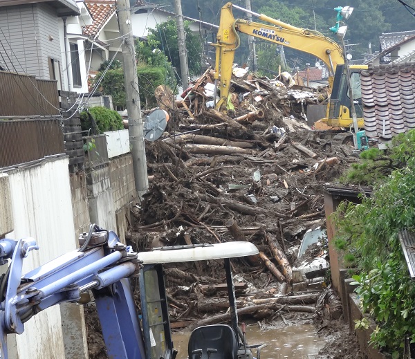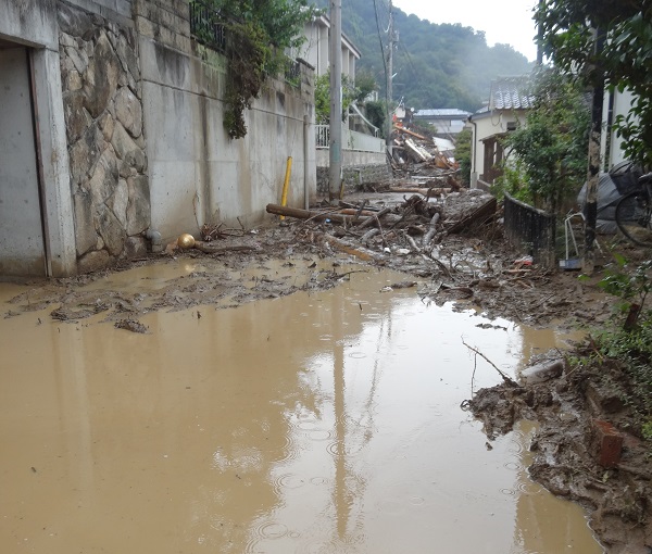 “まさ土(真砂土)”という崩れやすい土はTV報道で有名になったが、災害現場の道を進む際、復旧工事をやっていて迂回しようとすると、まさ土の土に足がどんどん埋まり足が完全に埋まってしまう。まるで底なし沼のようで、怖さを感じる。それでも人に迷惑をかける訳にはいかないので、自力で脱出。