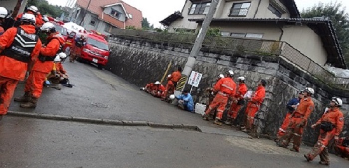 行方不明者の捜索現場(広島市消防局の皆さん)。