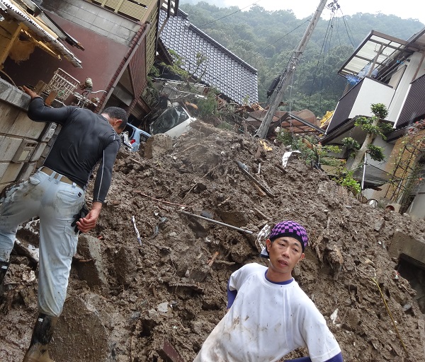 ボランティアセンターのリーダー「友人が今も土砂に埋まっており、居ても立ってもいられず、仕事を休んで来た」。