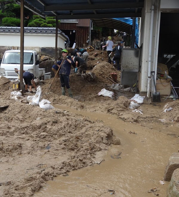 泥かき作業も泥に足を取られながらなので、普段動かさない方向に関節が動かざるを得ず、作業を終えた段階で既に足の関節回りが痛かった。行方不明者の捜索活動や復旧作業をされている方は、相当疲労困ぱいだと思う。愛媛県などの緊急消防援助隊や、陸上自衛隊の隊員の方に声をかけさせて頂いた。先に向こうから、「お疲れ様です」と声をかけても下さった。