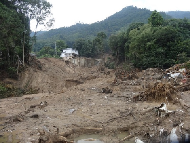 土砂崩れ現場(中腹やや下)。元あった家は、見る影もない。