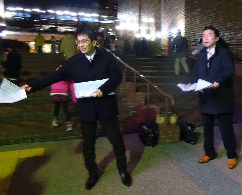 夜は、狭山市駅東口で『ひろし新聞143号』配布。(9時半まで)