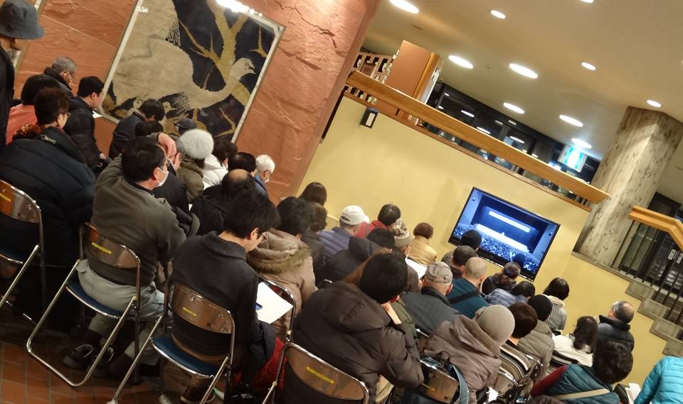 会場は、1・2階1200席でしたが入りきれず、ロビーにも約200人がTV映像や音声で聴いていました。