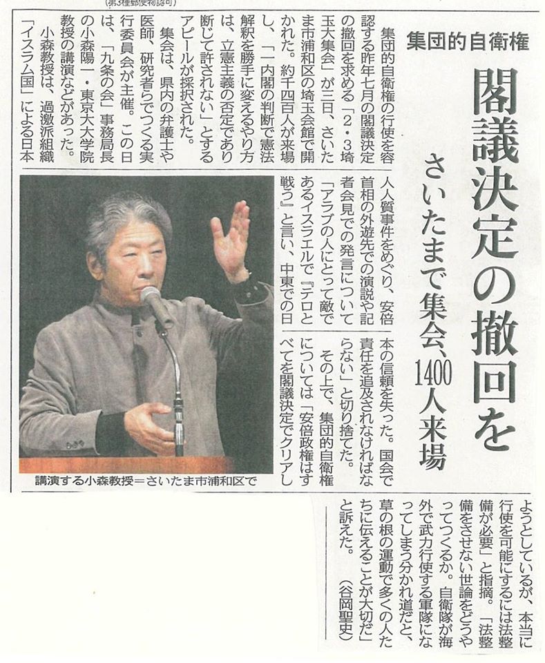 【集団的自衛権・県民集会、超満員!】
