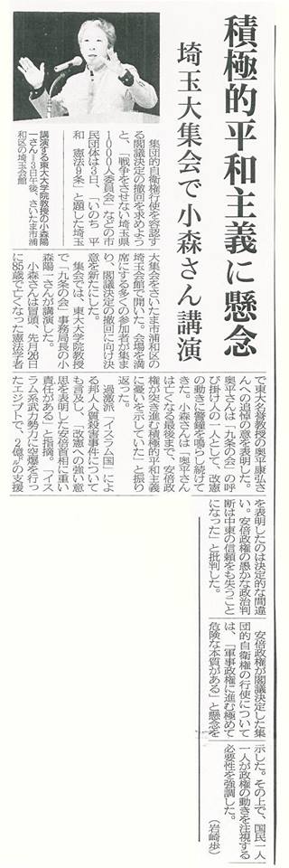 今日、集団的自衛権閣議決定撤回求め、浦和で集会が行われました。