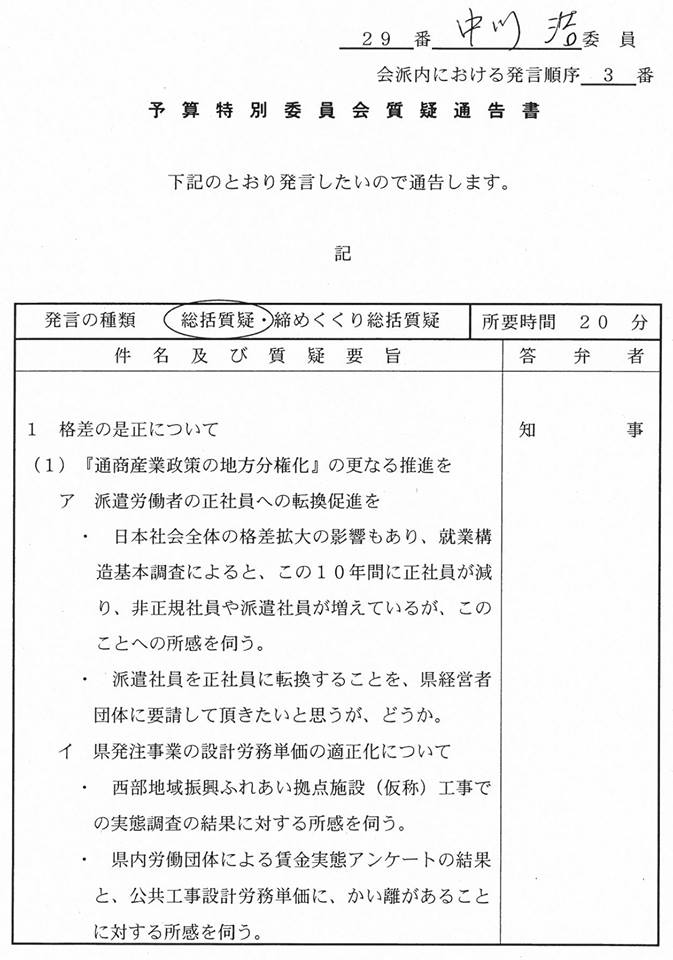 危険ドラッグ条例も審議中ではありますが、予算特別委員会で今回質問するテーマは、『格差是正』1本に絞りました。県議1期目で取り組んで来た1番のテーマです。