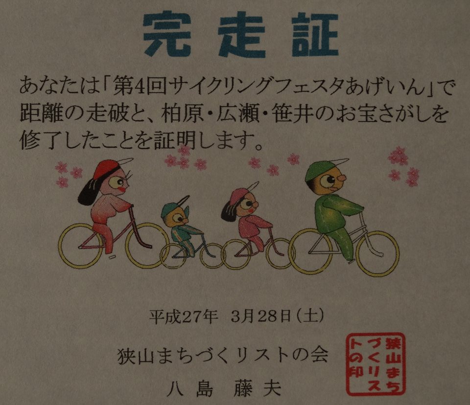 狭山市内の史跡(柏原城山砦、上宿遺跡)や、市の中心部を流れる入間川のサイクリングロード(現在、県が更に整備中)約30kmを巡るサイクリングイベントが今日行われました。