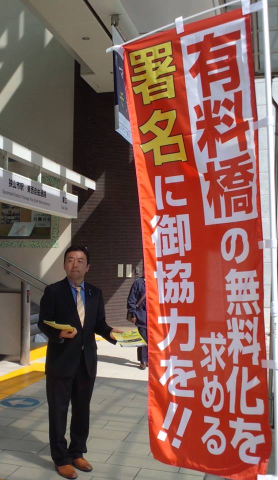 朝は狭山市駅西口駅前で、ひろし新聞配布。