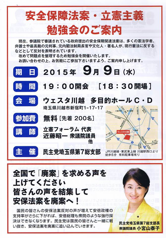 今回この事について、私が所属する会派の松坂よしひろ県議(東松山・小川・吉見)が質問します。