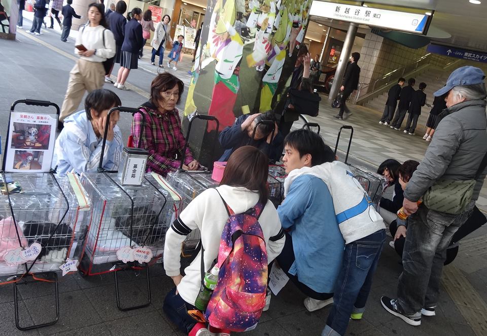 南越谷駅前(武蔵野線・東武線乗り換え口)では、今日も【犬猫の里親募集】活動をボランティアの方々がやられていました。