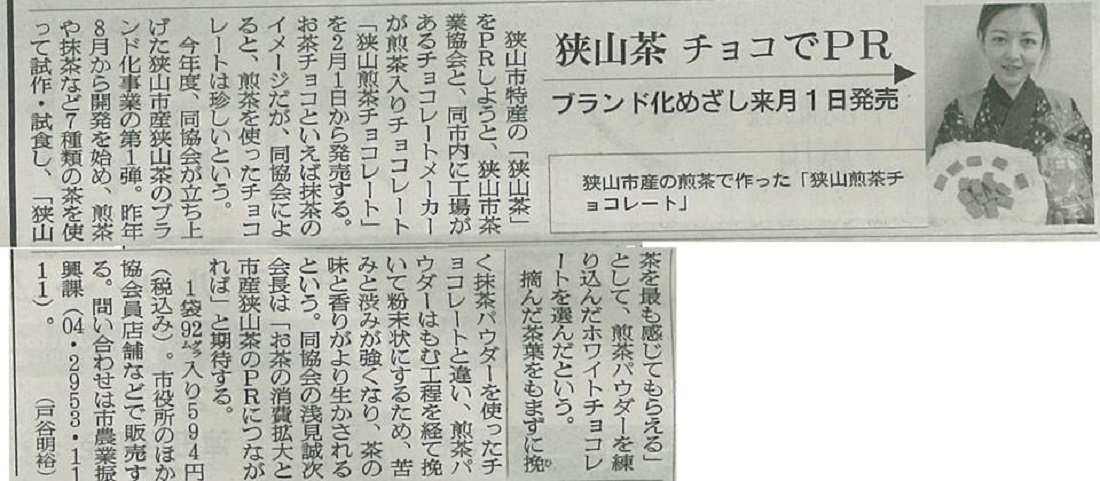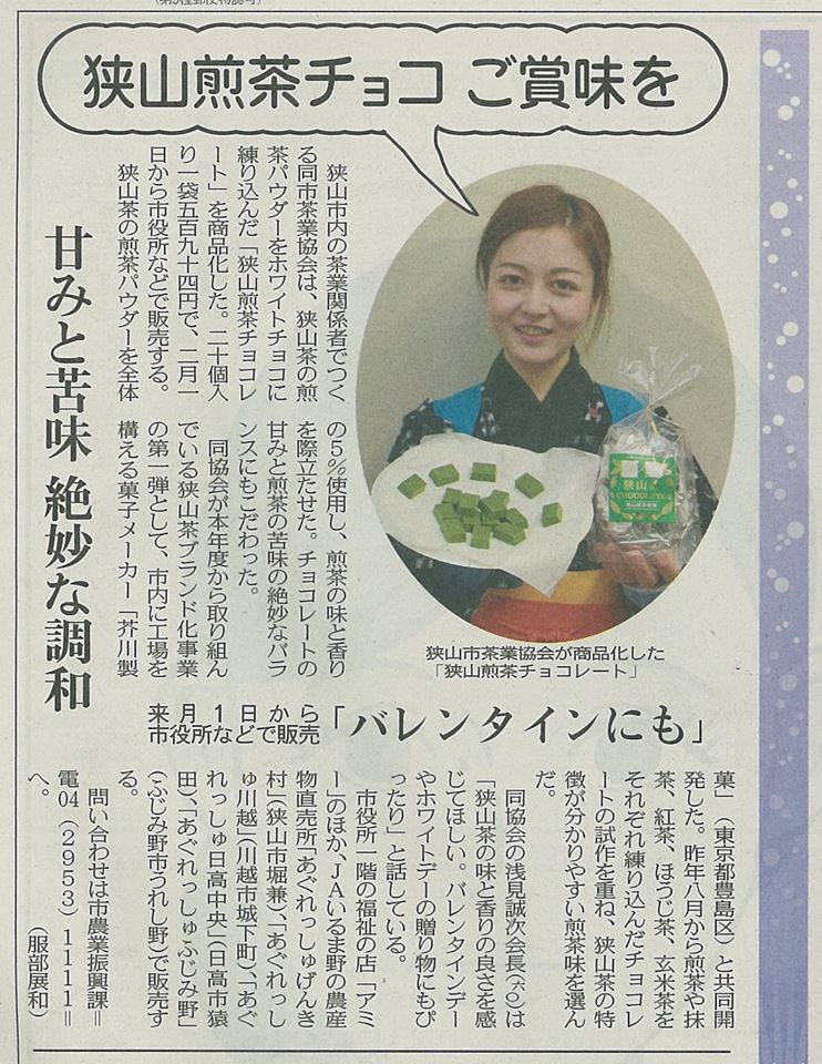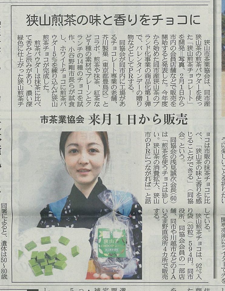 「狭山煎茶チョコ」ご賞味を 来月1日から市役所などで販売 東京新聞 1月30日