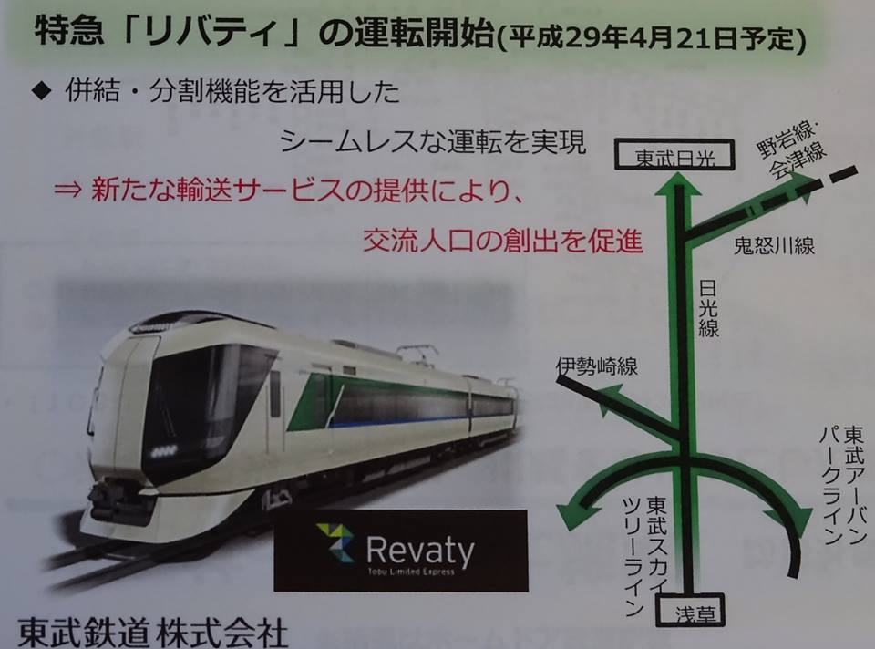 東武鉄道さんから「特急リバティをPRして」と言われました。“シームレス”とは、連結・切り離しして、別の方向に電車が行く事。
