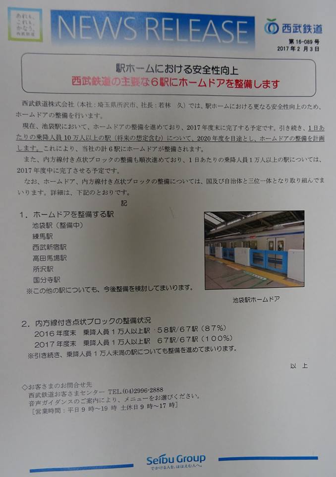 私は視覚障害の方の死亡事故前から、県内各路線の早期設置を求めています。見える人が「目をつぶって歩いてみろ」と言われて、出来る事ではないので。
