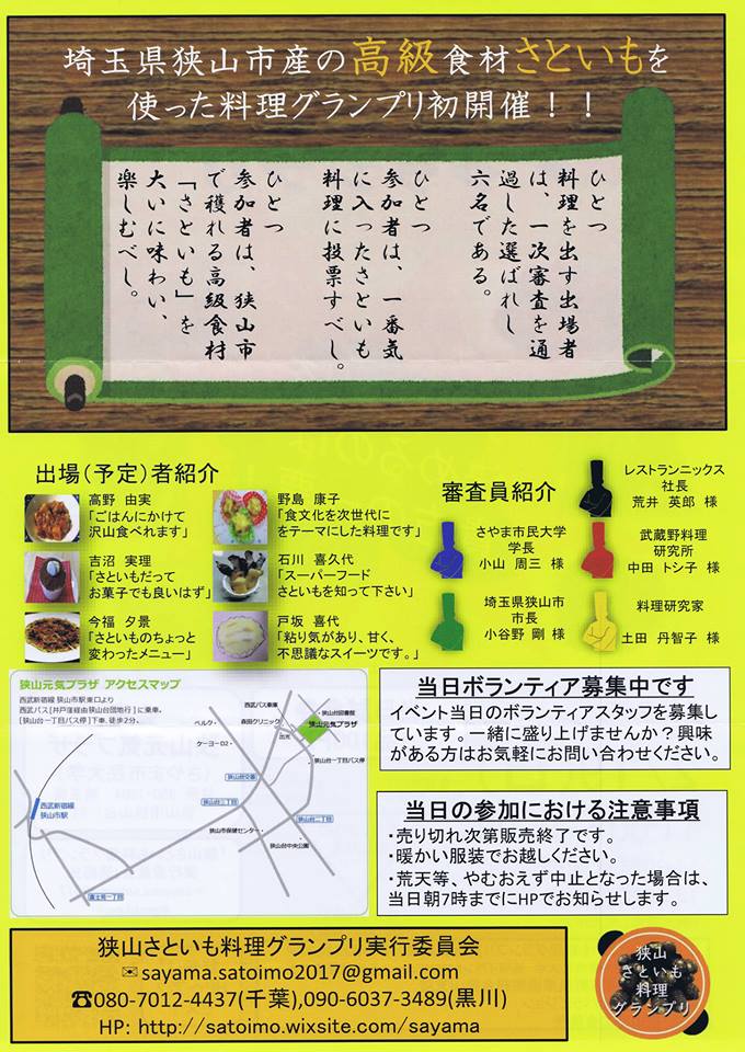 【狭山市】ブースにお越し下さい。狭山茶の煎茶チョコが試食出来るかも。