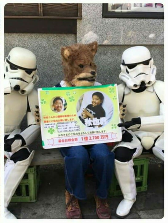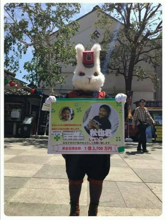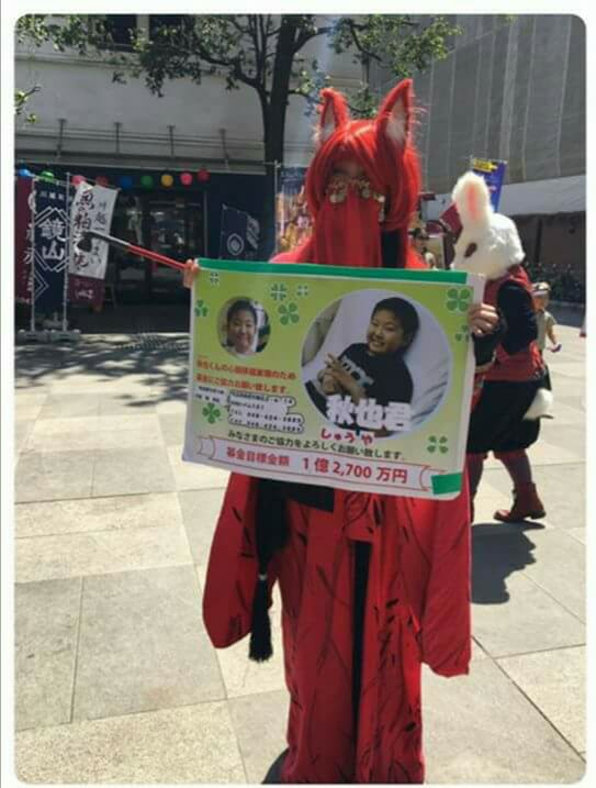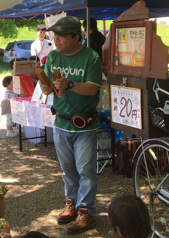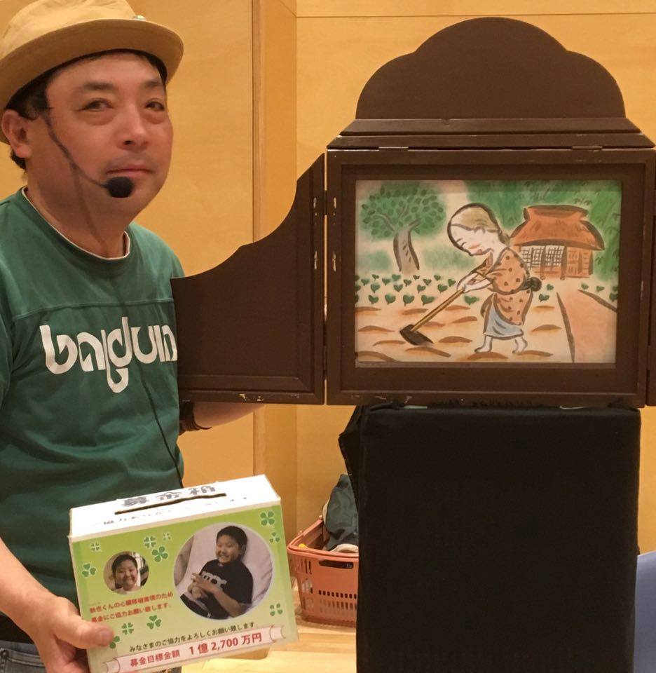 紙芝居師のマナブンも、秋也君の募金活動をして下さっています。