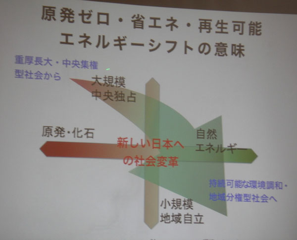 「原発を造ってはいけないという思いから、『自然エネルギー・省エネルギー促進条例』を県議会の共同提案で作った時、県庁は難色。