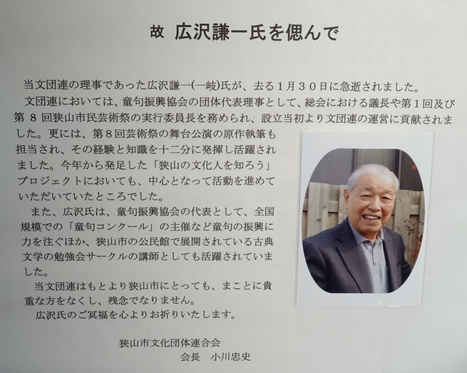 狭山の文化団体連合会主催『芸術祭』で、有り難いと思うのは、屋内のイベントなのに、お茶屋さん2店・震災復興支援団体・障害者施設が出店を出している事(市民会館内にて。狭山茶の試飲サービスも)。