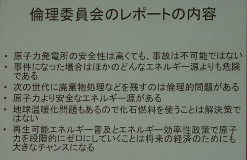 しかし、原発事故がその後起き、今思えば、条例をつくった事で満足してしまい、努力が足らなかったと思っている。