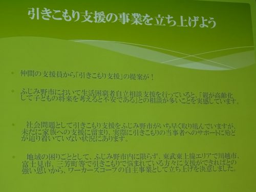 県内の障害者施設が作ったシャツを着て、今日は県庁の福祉部と協議しました。 ↑ありがたい事に、シャツの注文をFBで頂いております(^^)/。想定外です。(^O^) “Nothing About Us Without Us 私達の事を、私達抜きに決めないで” 私なりに言えば、(障害者から)ただ話を聞いただけでなく、障害者やその親御さんの気持ちに【なり代わって】不退転の決意で改善が出来るか。 親が高齢化し、旅立っていく前に、障害を持つ子の将来に安心が持てるか。私たち県庁の責任です。市町村役場と違って、現場が遠い部分をカバーして。 (Made by やどかりの里。さいたま市見沼区)