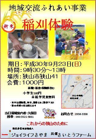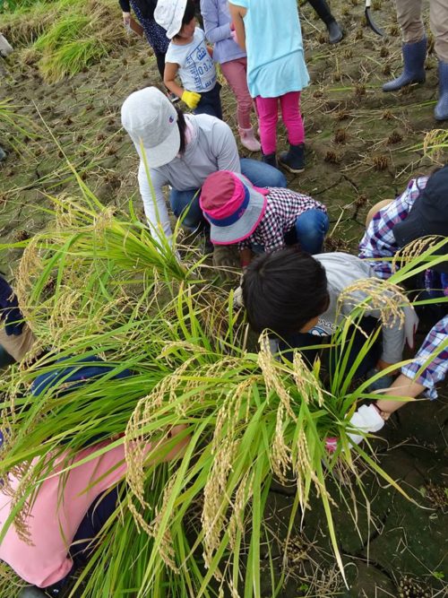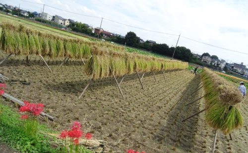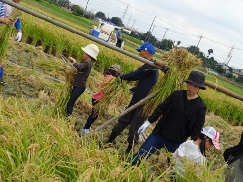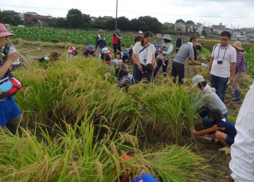 狭山で【稲刈り体験】 親子106人が今日、参加。