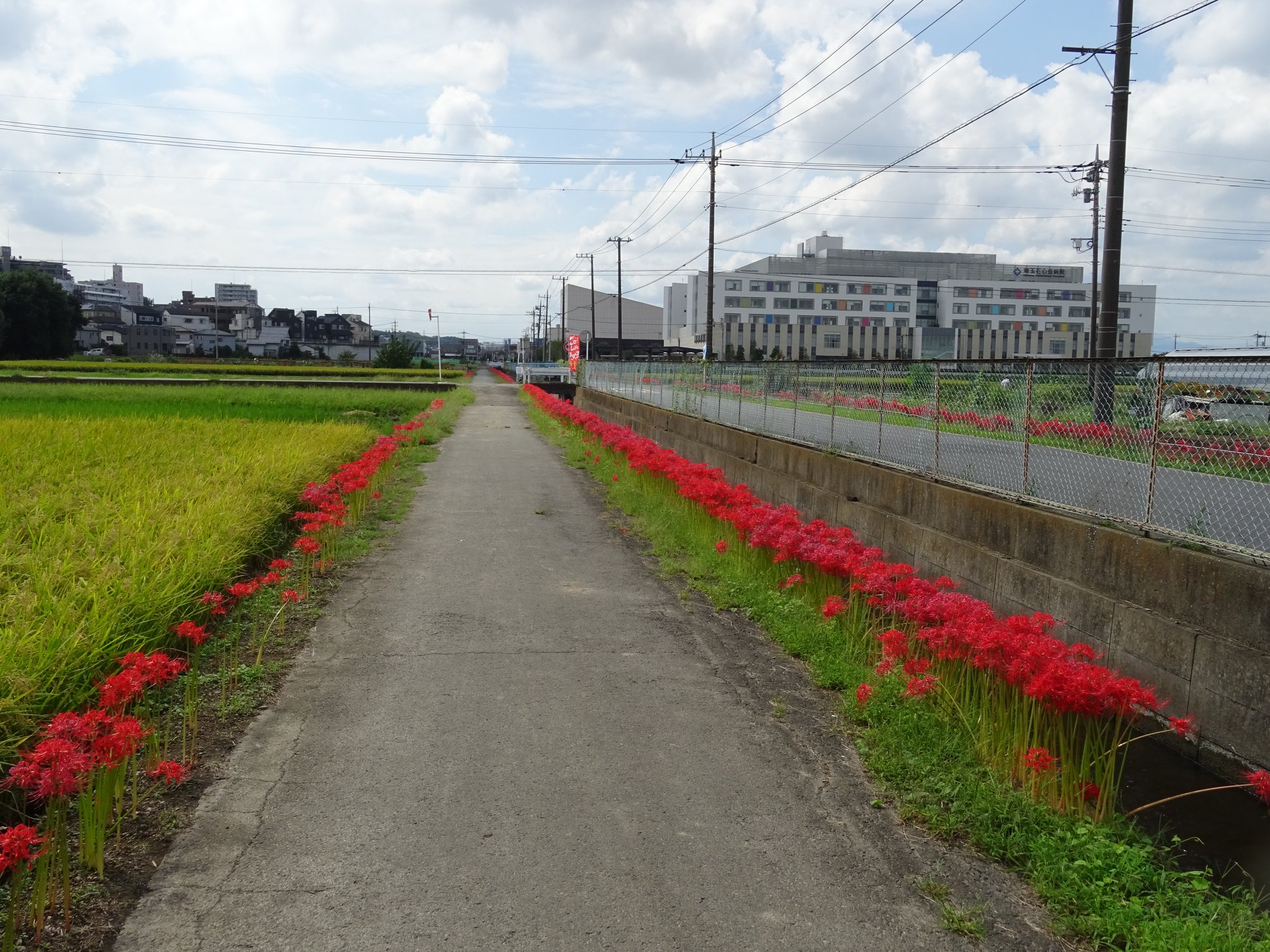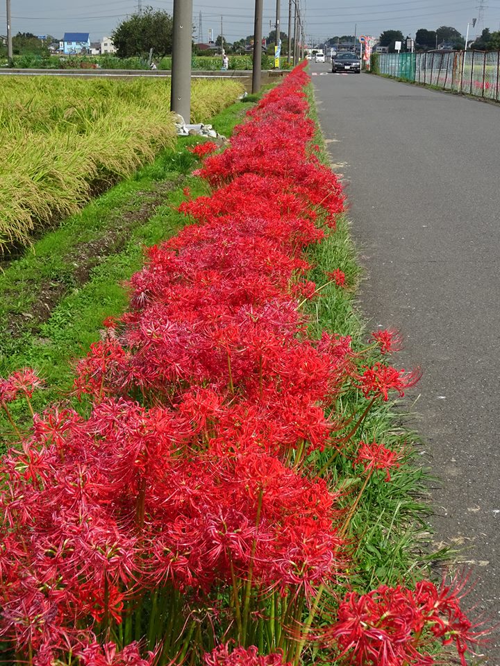今から24年前(平成6年)当時の市長(故人)が農家の方に、曼珠沙華を植えて頂くようお願いし、はじめ3株だけだったものが、今は『