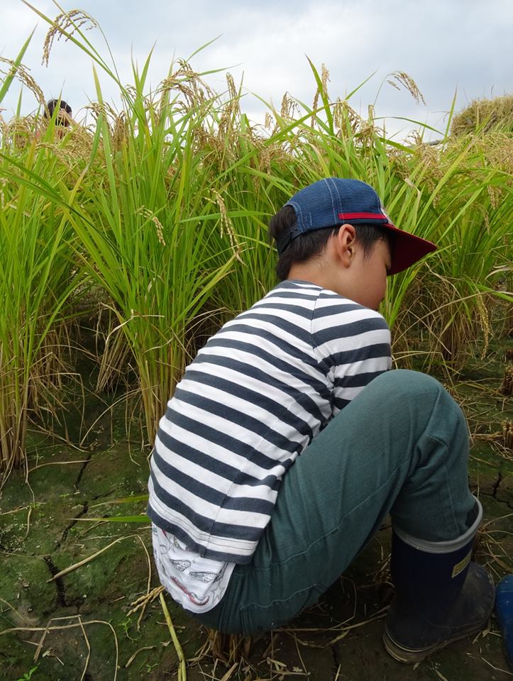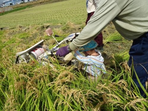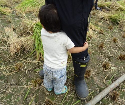 ちっちゃな子が、稲刈り体験中、全力で泣いていました。