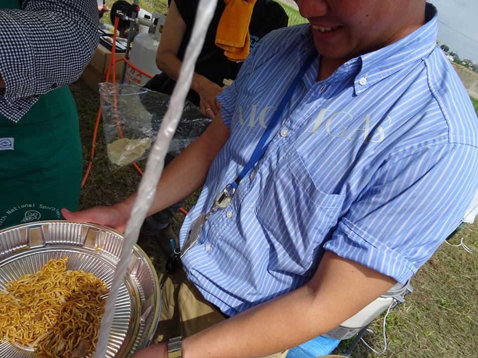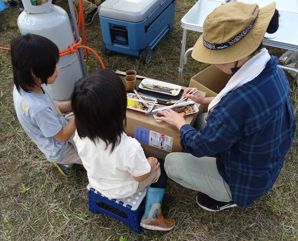 ≪稲刈り体験≫ ガス屋さん(ニチガス)も、ボランティアで、コメ作り体験のバックアップ(食事調理・提供)をして下さっています。