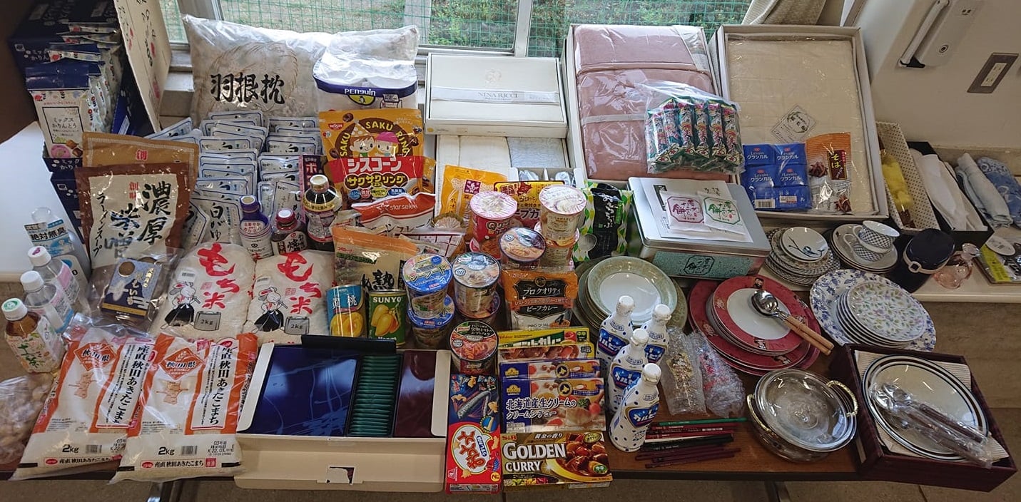 食料品・寄附金などを先日、『フードバンク狭山』の拠点に運びました。『新品』のお皿・寝具もあり、写真以外に
