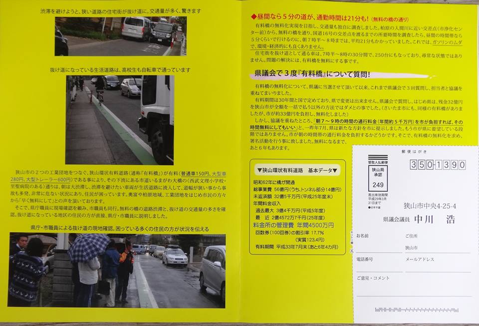 1、狭山環状有料道路など、県有料道路の消費税8%据え置きを