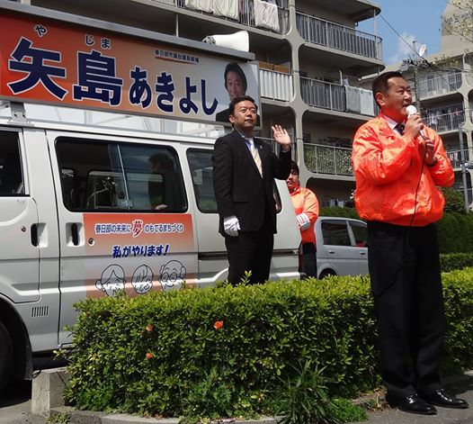朝から春日部市議会議員選挙の応援。 候補者本人の代わりに、街頭演説したり、宣伝カーでしゃべったり。