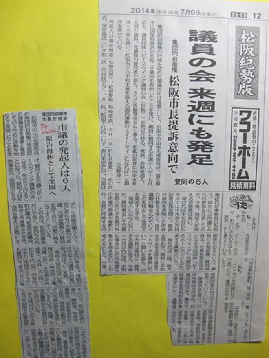 解釈改憲の違憲訴訟を起こすべく、三重県松阪市長の呼びかけで、全国議員の会『ピースウイング』が設立。