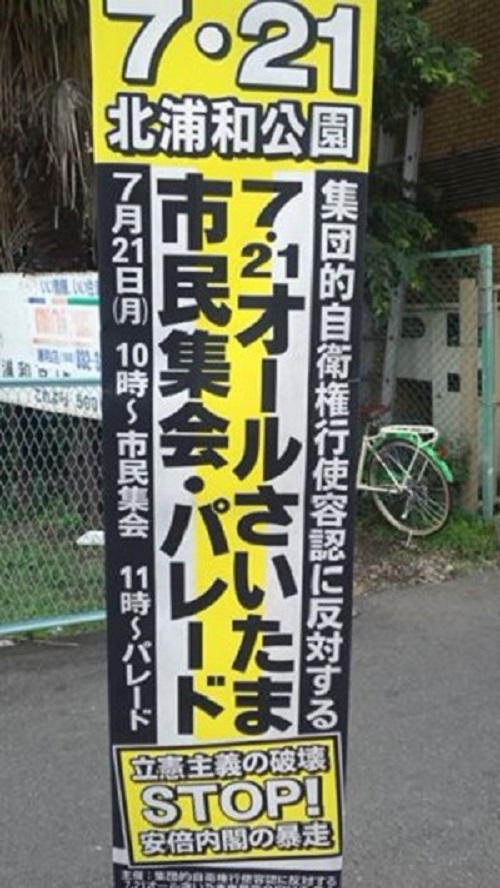 集団的自衛権に反対する7.21オールさいたま市民集会(北浦和)。