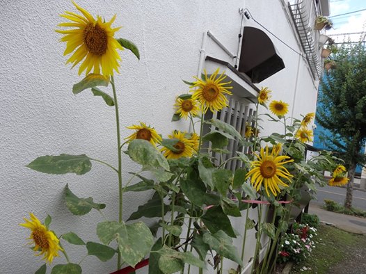 私の事務所の脇にほんのわずかな地面があるので、子供の頃以来となるヒマワリの種を植えました。植えたのが遅かったので心配しましたが、元気に咲いてくれました。