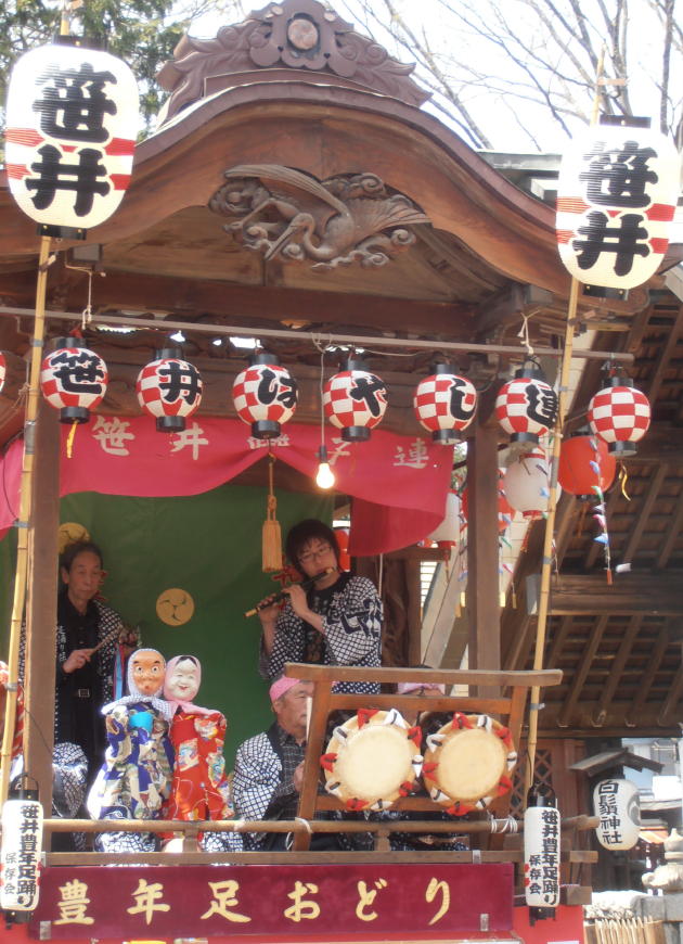 狭山の豊年足踊りは、以前ドイツでも公演した事があり、笹井のお囃子の山車は、3年に1度、地域を引き回す。次回は2年後との事。