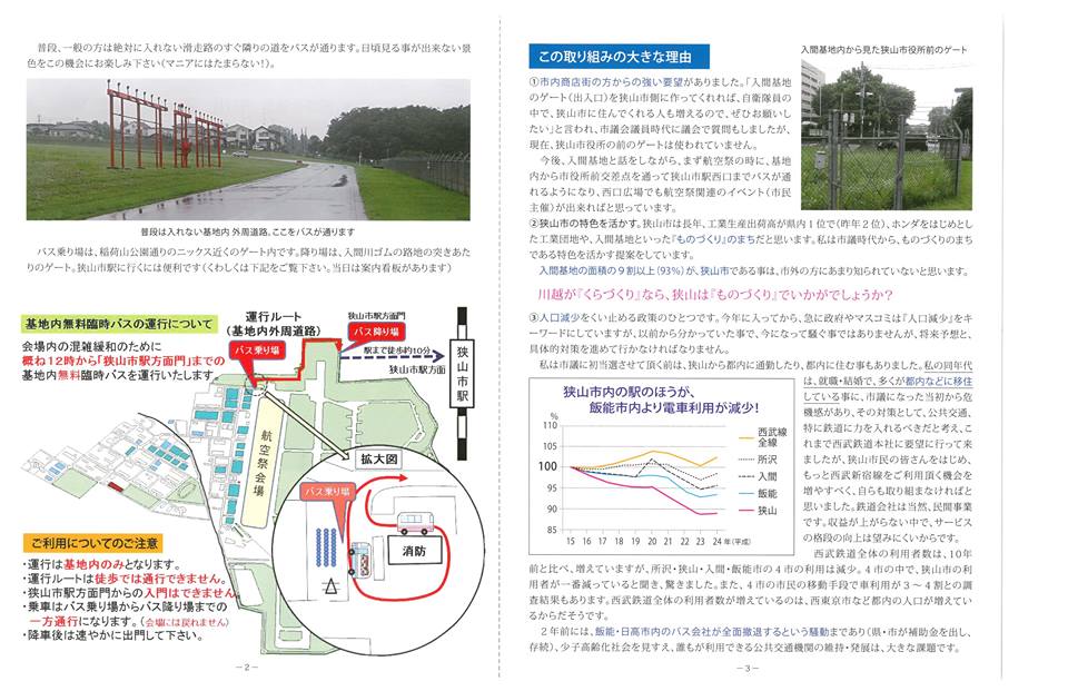 【航空祭】での『無料バス運行』のお知らせだけに見えるかも知れませんが、実は、人口減少対策、鉄道政策、まちの特色づくり(ものづくりのまち)についても書いています。お読み下さい。