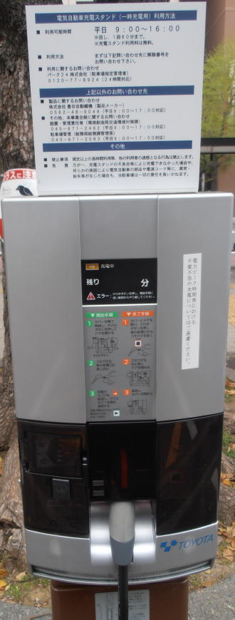横浜市役所にあった電気自動車の充電器。利用料は無料との事