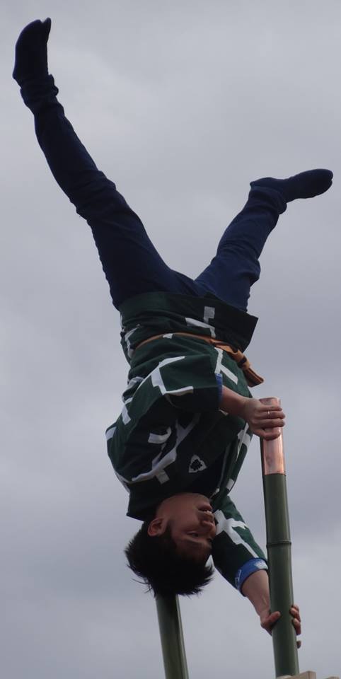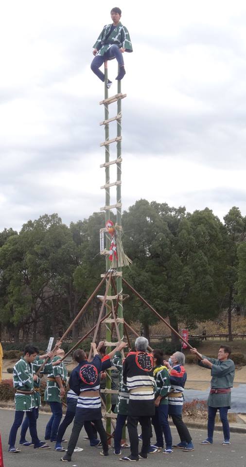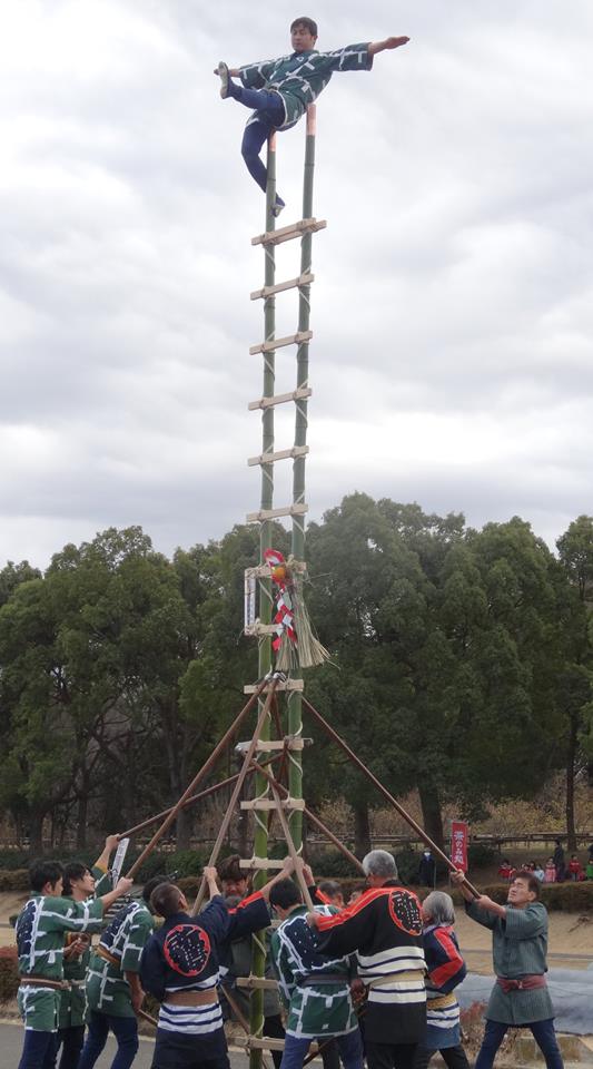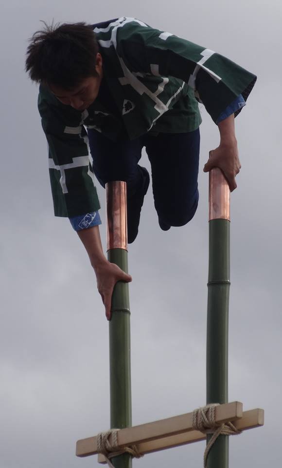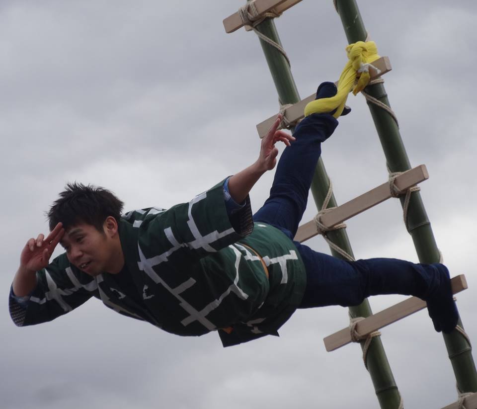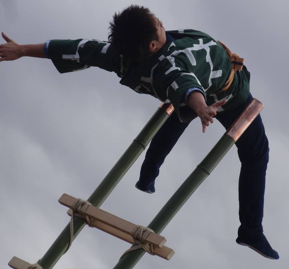所沢鳶組合の皆さんによるはしご乗り。これからやるところ。