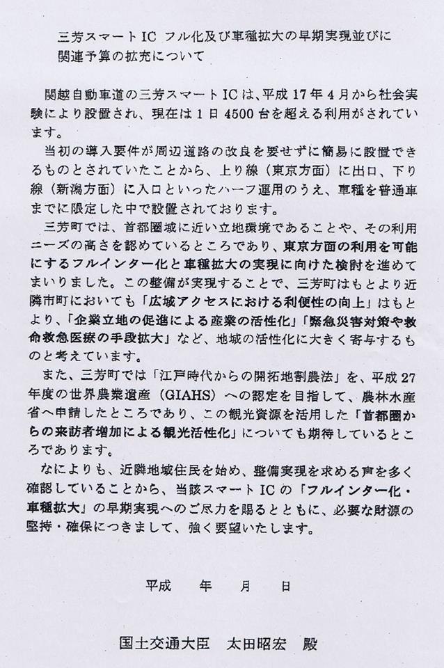県議会でも国に要望を上げたいと思います。添付資料は、三芳町が国に提出した要望書。今日所沢市議さんから頂きました。