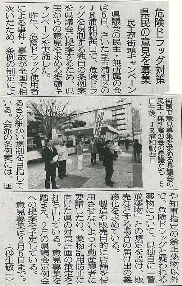 【危険ドラッグ対策 会派の取り組みが新聞掲載】