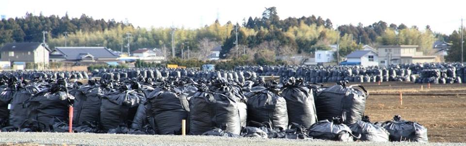 福島県 飯舘村(全村避難中)の至る所に野積みされている除染廃棄物。