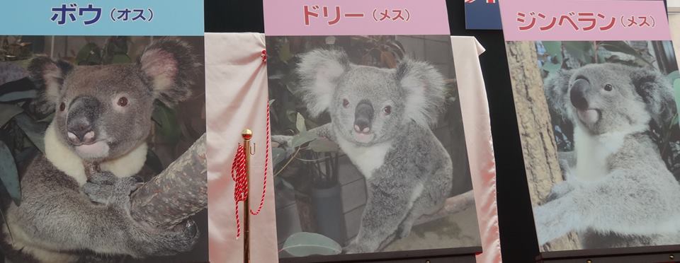 他の2頭のコアラの名前は、ボウ(美しいという意味。3頭のお父さん)、ドリー(アボリジニの長老の娘さんの愛称)。